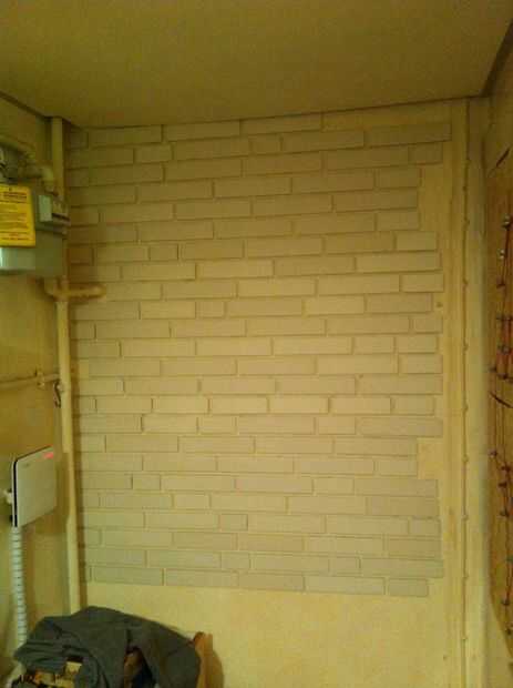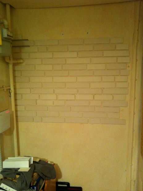 Empecé dibujando algunas líneas en la pared con un nivel que me guíe. Luego pegué los azulejos en la pared con adhesivo de la tira selladora. Puesto que los azulejos son muy ligeros, pegan bastante bien y no salen hasta el pegamento curado.