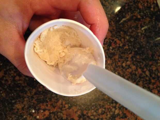 1 agarra una cuchara de plástico reunió scoop antes por harina, debe desbordar