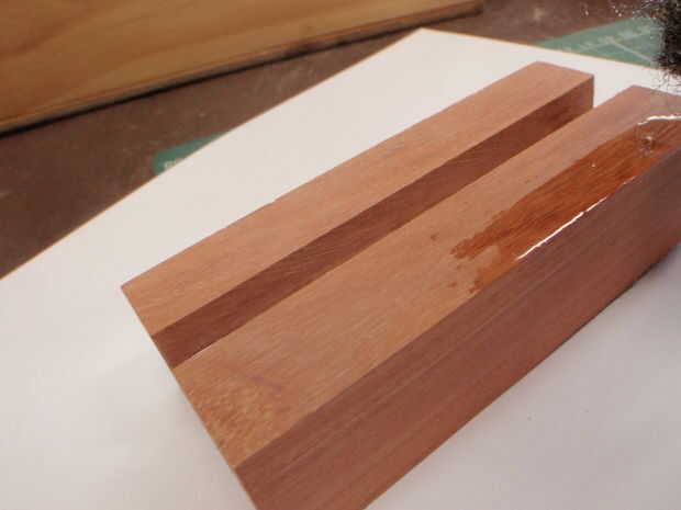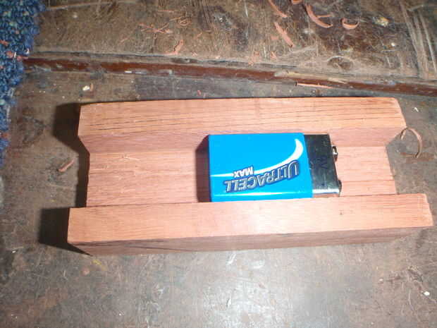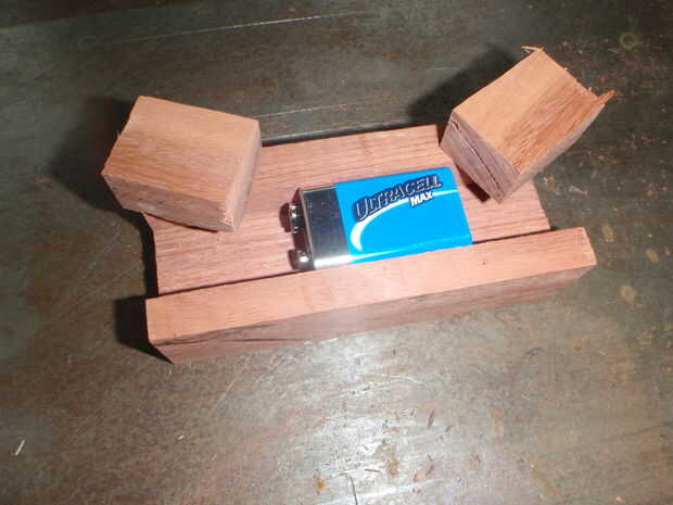 Después de la prueba todo montaje y soldadura de la batería broche de presión en los 2 bloques más pequeños puede pegar. La base fue enarenada para arriba y una capa de aceite de muebles.
