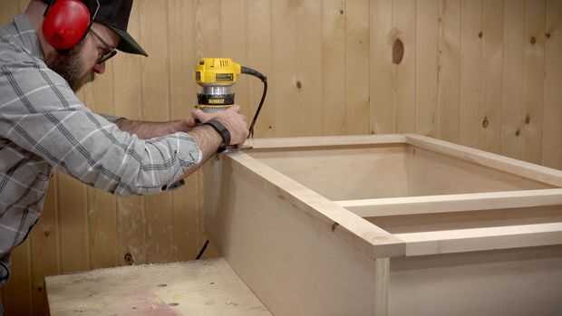 Con una broca de recorte al ras con el rodamiento en la parte inferior, limpie la proyección del marco frontal. El cojinete se paseo por el gabinete mientras la broca sólo elimina material de la estructura de la cara y deja una perfecta cerca de la superficie.
