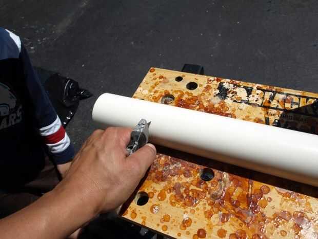 Los nodos son las partes de diámetro más grandes de bambú real y nuestro bambú falso no puede ser sin.  En bambú real, estos puntos son sólidos donde el resto del bambú es hueco.  Afortunadamente son fáciles de crear.  En este punto puede hacer referencia a algunas fotos o algunos bambú real si usted puede encontrar encontrar un espacio de buen cabeceo.  Otra cosa a tener en cuenta es la colocación de nodo si desea tener un nodo sólido (como un tapón o sólo de una superior).  No te olvides de colocar una línea de corte cerca del extremo del tubo (3/4 de pulgada mínimo es lo que he encontrado) para este propósito.  Con una navaja, corte una línea alrededor del tubo.  Para un mejor efecto de ir alrededor de dos veces para obtener el corte un poco más.