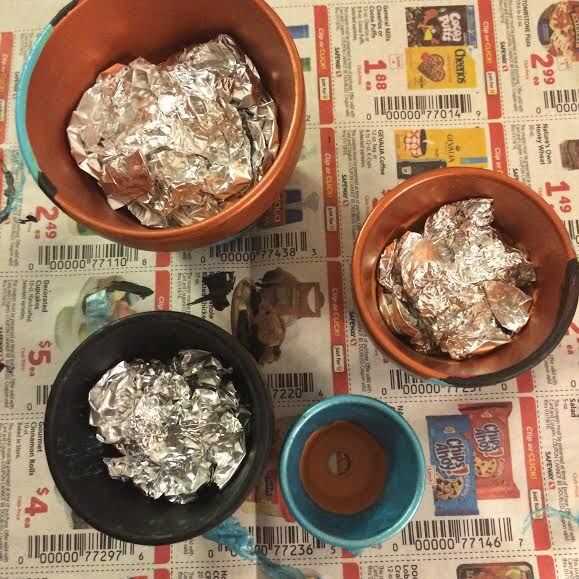 Si no tienes un montón de rocas, puede poner algún papel en el fondo de las macetas para poner menos rocas en cada maceta.