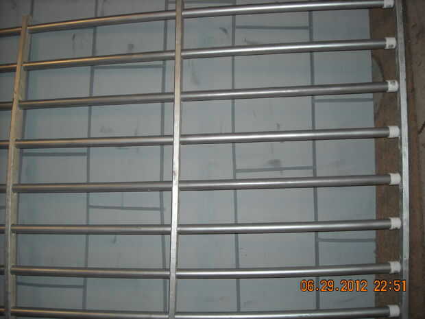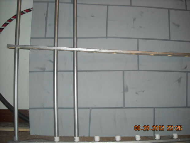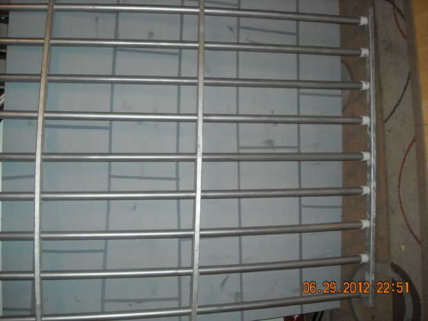 Una vez que hacer todos los agujeros en la placa (en mis agujeros caso 10) puede comenzar a deslizar a través de los postes montados. Si tiene problemas al taladrar los agujeros como hice entonces utilizar su juicio y tomar una decisión sobre cómo solucionar su problema. Para mí, el último agujero en el primer tubo roto así que solo decidí tomar ese tubo entero fuera de mi sistema.