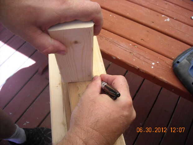 Ahora utilizan el corte 2x4x2ft y marca en la placa de 2x4x8ft. (ver cuadro 4). Este marcar y cortar la forma cuadrada. Esto permitirá que los dos tableros bloquear y hacer un soporte en forma de T para la pieza del fondo.
