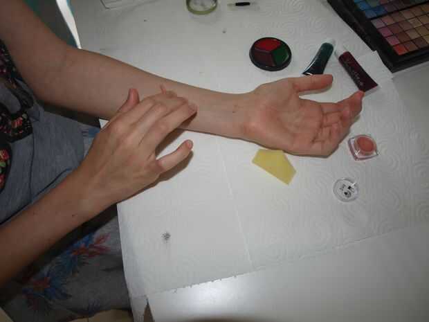 Comencemos con la cicatriz. en primer lugar tendrás que limpiar tu piel donde quieras tu cicatriz que. He optado por trabajar en mi brazo, porque esa es la parte más fácil trabajar en considerar la cicatriz. La mejor manera de limpiar tu piel es enjuagar con agua tibia y luego séquela muy seco. (No use jabón -> podría no hacer masilla así).