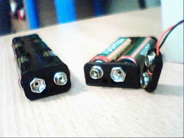 Como se puede ver en las fotos, usé un clip de batería de 9V para la alimentación porque tenía 2 portapilas con las mismas conexiones. (1 daba 3V y otros 6V)