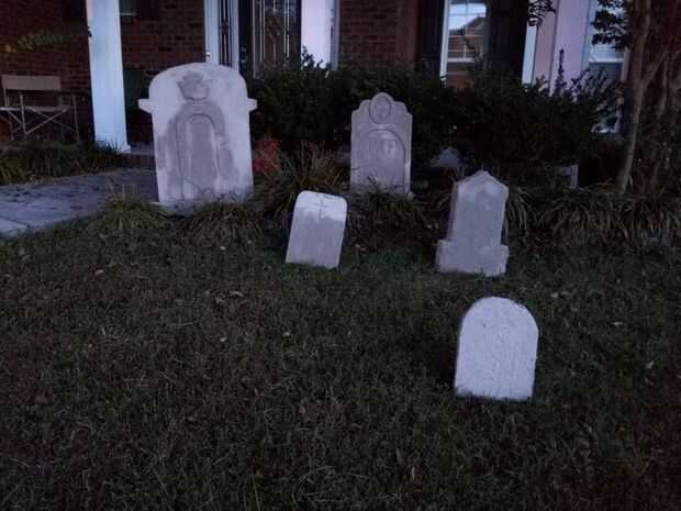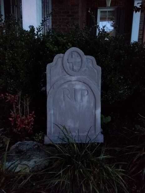 A ver que si nos gusta lo que hicimos hasta ahora, habíamos puesto las lápidas frente a nuestra casa justo antes de anochecer.