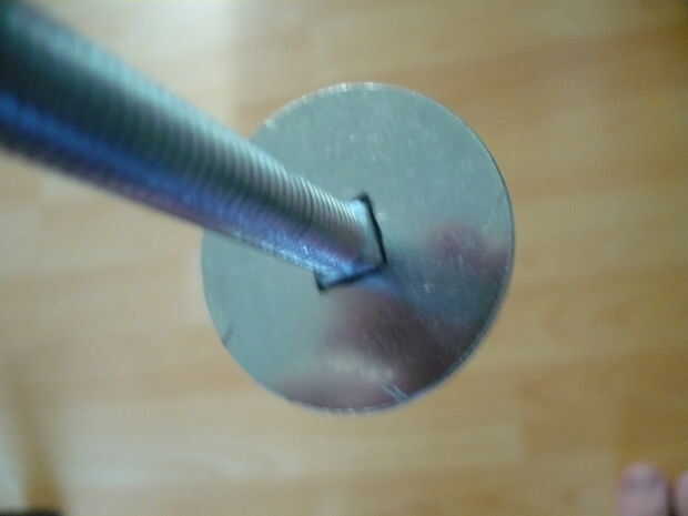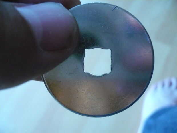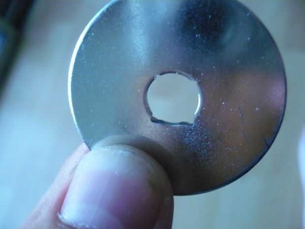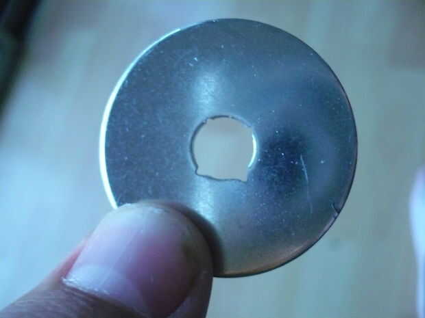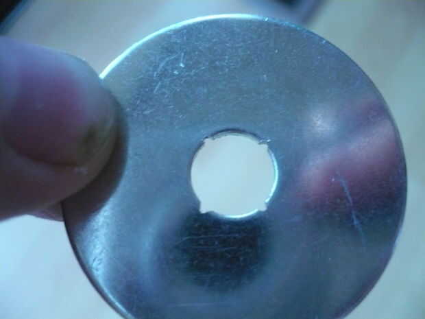 Archivo de la lavadora, por lo que el agujero en el centro es cuadrada y lo suficientemente grande para el perno que pasar por.