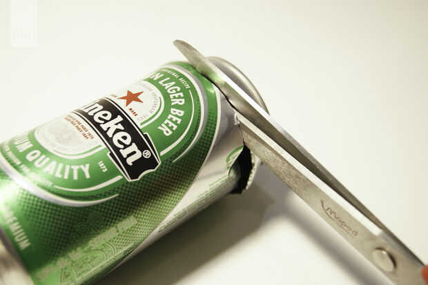 Retire la tapa y el fondo de la lata y deshacerse de ellos... o utilizar en otro proyecto (: