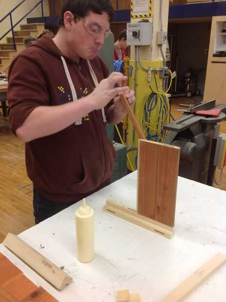 3. Las espigas deben coincidir con el ancho de las mortajas y redondeadas en los bordes, pero suelo tener estudiantes que sean menos, porque permite un pequeño grado de error.