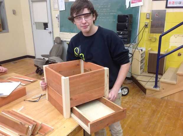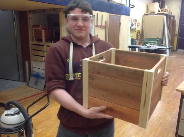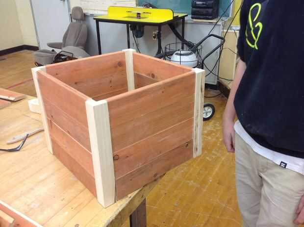 Se trata de un simple cajón de madera, hecho de una sola sobra cerca madera de pino y un pedazo de madera desechado. Se une por una combinación de pegamento para madera, clavos y una rudimentaria lengüeta y ranura.Es sorprendentemente ligero (siendo