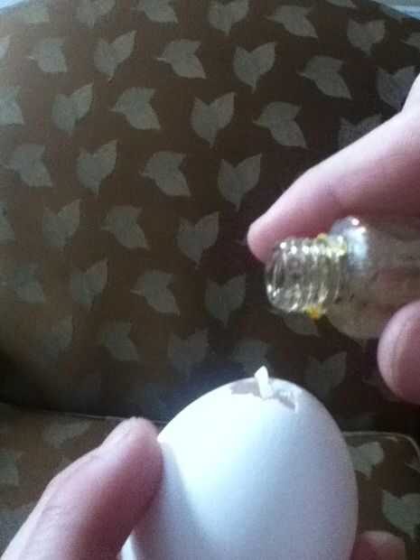 me gusta un reto tan decidido vendría con un falso huevo y entrar en este concurso! Hace una gran alternativa para hacer las tareas del hogar!Tomé un huevo blanco llano e hizo dos pequeños agujeros superior e inferior y sopló hacia fuera de las tripa