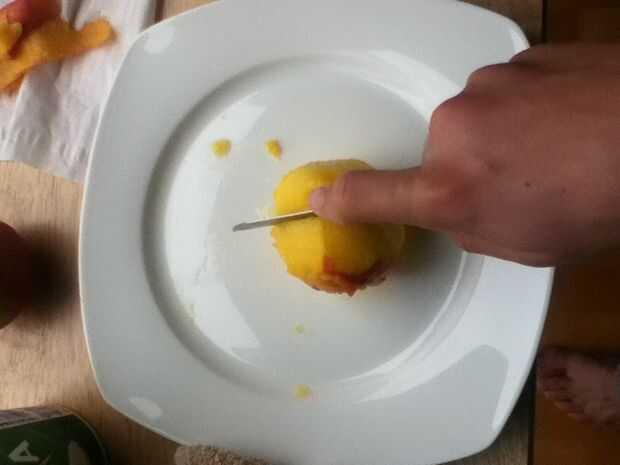 Falso huevo y papas fritas: Melocotón yogur y manzana (3 / 7 paso)
