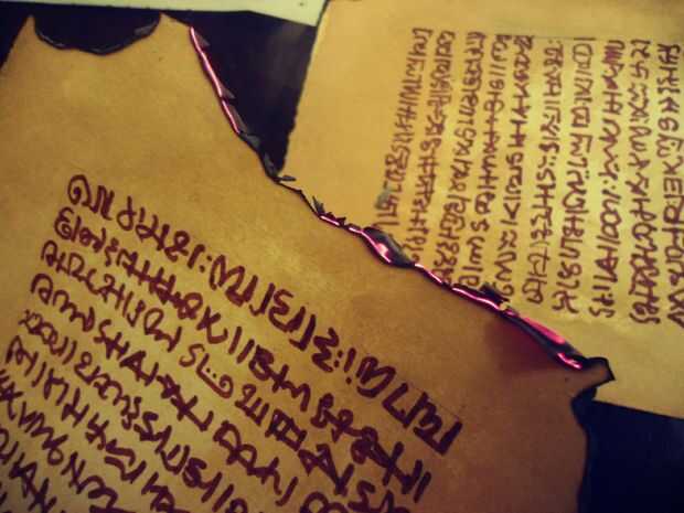 Falso papiro egipcio / manuscrito de hoja de Palma. (8 / 10 paso)