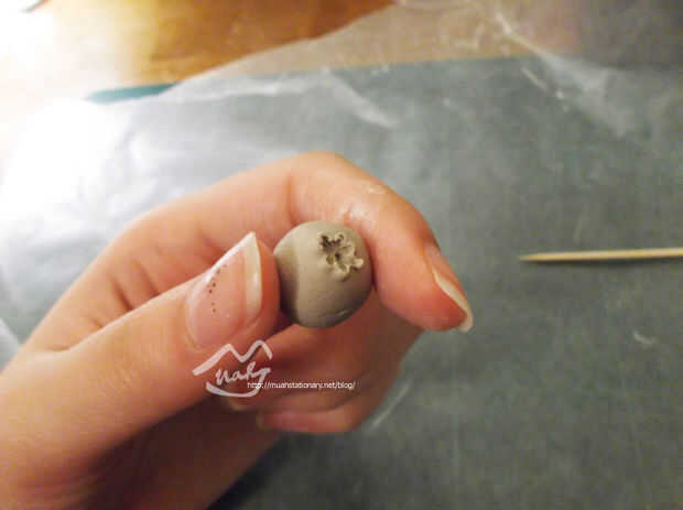 Use otro palillo de dientes para empujar hacia el lado que está directamente enfrente del palillo de dientes y dibujar una flor de este punto central.