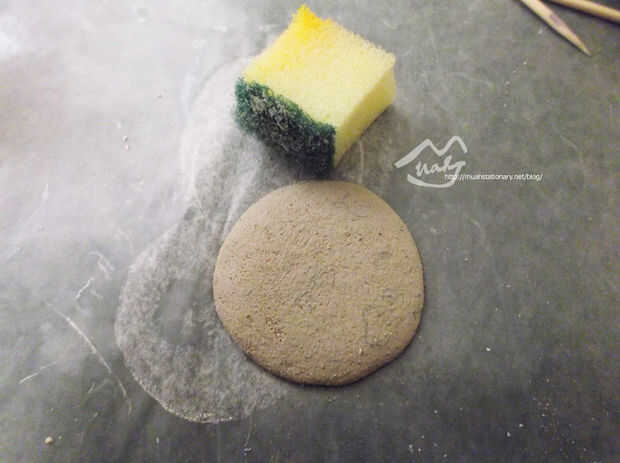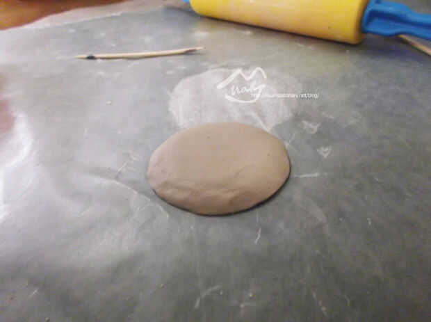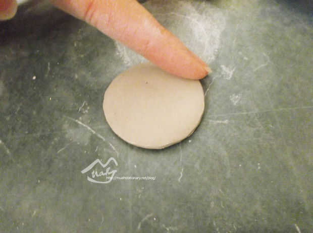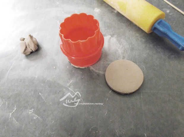 Use un objeto circular (aquí se utiliza un cortador de galleta de plástico) para cortar un círculo de la arcilla.