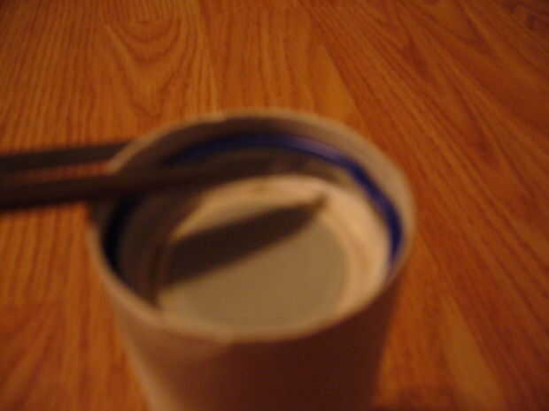 ~ a continuación, poner dos tapones en el rollo de papel higiénico, asegúrese de que usted tiene el derecho de los y encajan perfectamente. poner una boca abajo en un lado y al otro lado derecho, en el otro lado con el marcador que hayan cortado, colocado en el centro, luego empuje hacia abajo la tapa boca abajo hasta su contacto con el marcador. Cortar el rollo exceso tp.
