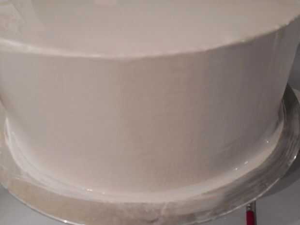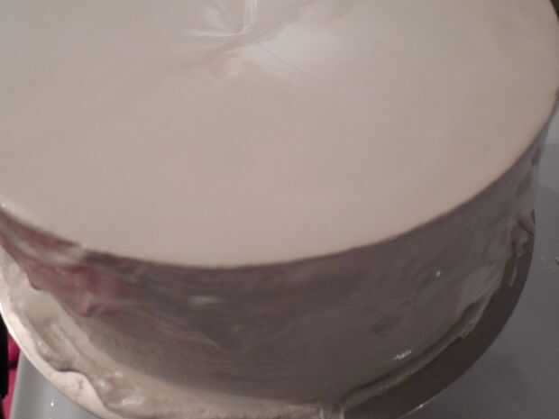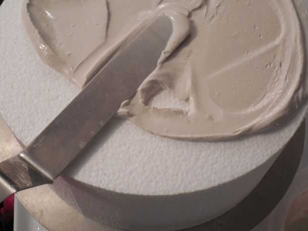 Después se cubre, tome el borde recto y empezaron la torta mientras sostienes el raspador al lado de la torta ficticia. Raspado al girar. (Lo sentimos no hay foto, no libre de las manos.)
