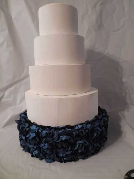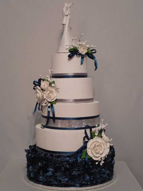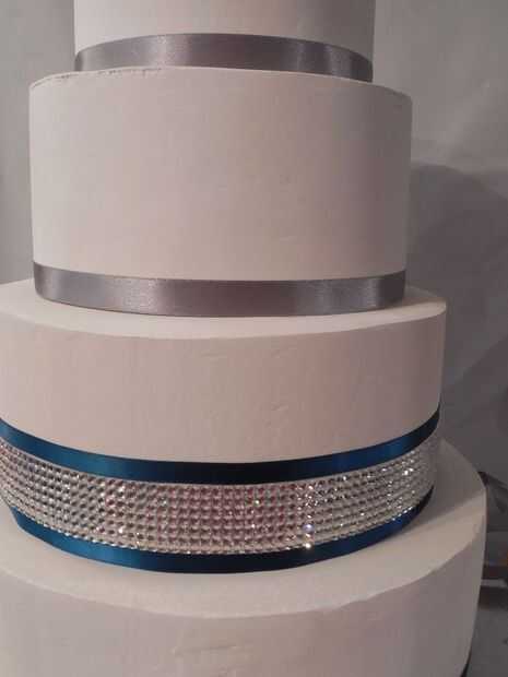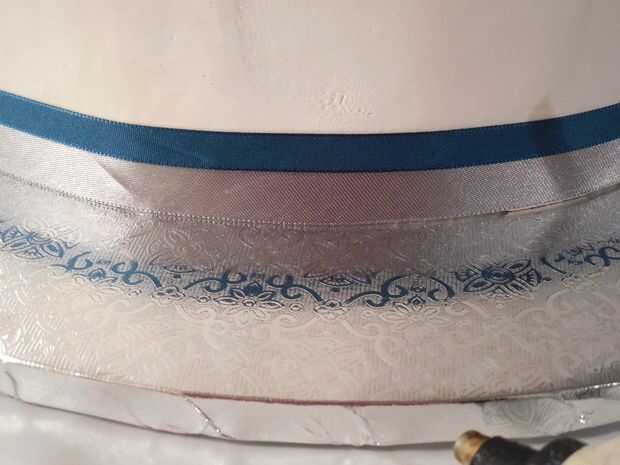 Tomar alguna cinta de color y crear pequeño racimo de lazo y pegamento detrás de las flores mostrará separación de la torta. (No blanco en blanco)