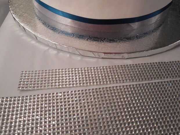 La cinta obtiene apenas envuelto y un poco caliente pegamento en la parte posterior. Realmente no hay necesidad para pegar la vuelta porque la cinta está sentado en un borde recto. Sólo se estire y agregar el pegamento al otro extremo y palo. La hoja de diamante de imitación es una de las mejores creaciones de su tiempo. Esta hoja se crea con un plástico suave que tiene una superficie faceteada y luego una lámina metálica hacia atrás que luego tiene la parte posterior del pegamento. Esto le permite adherirse a lo que usted quiere. Se ve como verdaderas joyas. Seguí el abrigo guarnecido en cada capa, terminando el diseño.