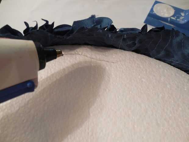 Que trazar el círculo y agregue un 1/4 "todo el camino alrededor, esto será doblado hacia abajo para crear un borde limpio. Encima de la espuma, comenzar pegando alrededor del borde.
