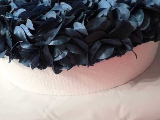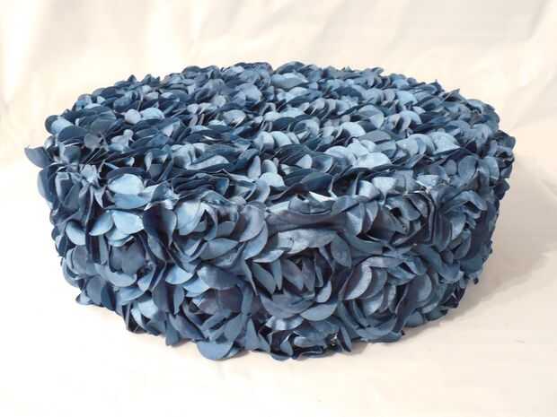 Cubierto con la tela rosa con textura azul marino, cuando usamos tela en esta capa no sólo crea una apariencia única pero engaña el cerebro pensando en las restantes capas son pastel.