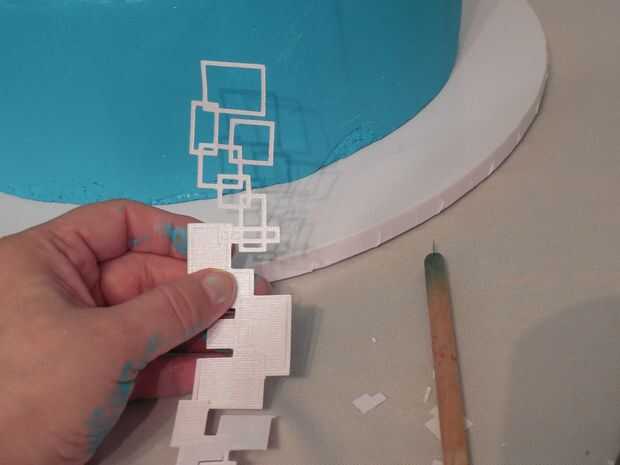 Entonces utilice la hoja de diamante de imitación, cortar una fila 3 y fila 4. Utilizar 3 filas para la capa superior y el 4 para el 3er. capa. Tendrá que coincidir los extremos para crear piezas el tiempo suficiente para ir alrededor de cada capa.