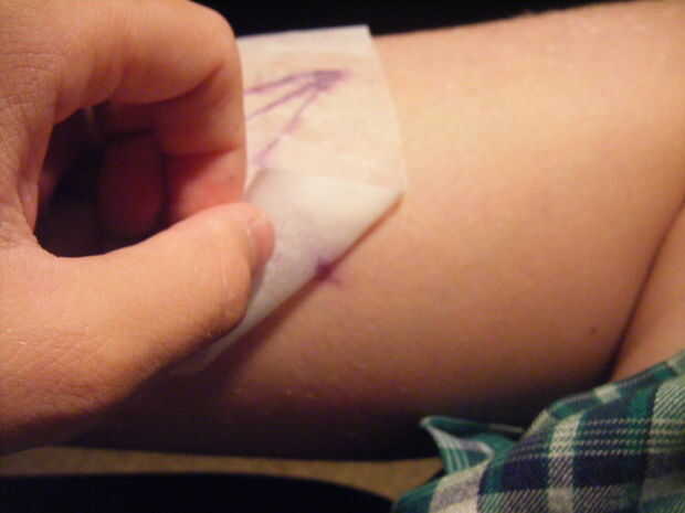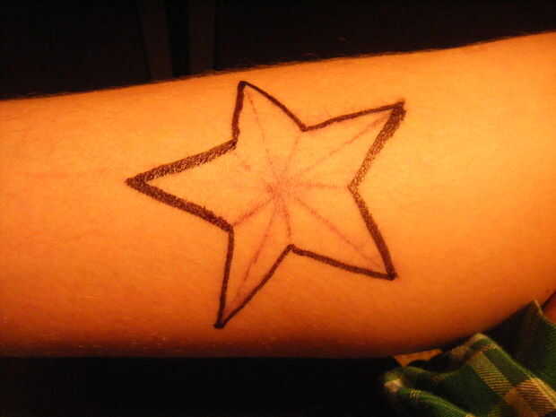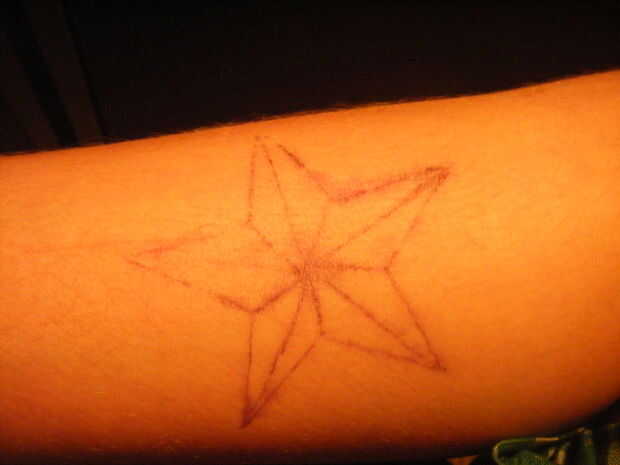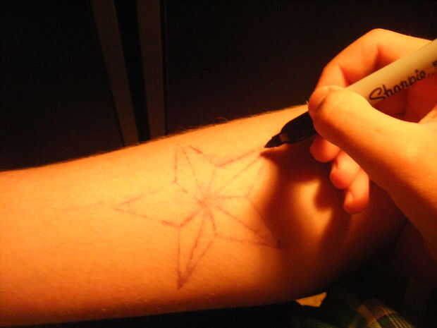-Retire el papel de calco y debe tener el contorno del tatuaje en su piel! -Tome los Sharpies y trazar el contorno. -Una vez trazado, color interior y si quieres fuera de tu nuevo tatuaje! (opcional) Ahí tienes tu nuevo tatuaje real-ly-fake!!! (comienzo pequeño y fácil y poco a poco progreso más difícil!!!)