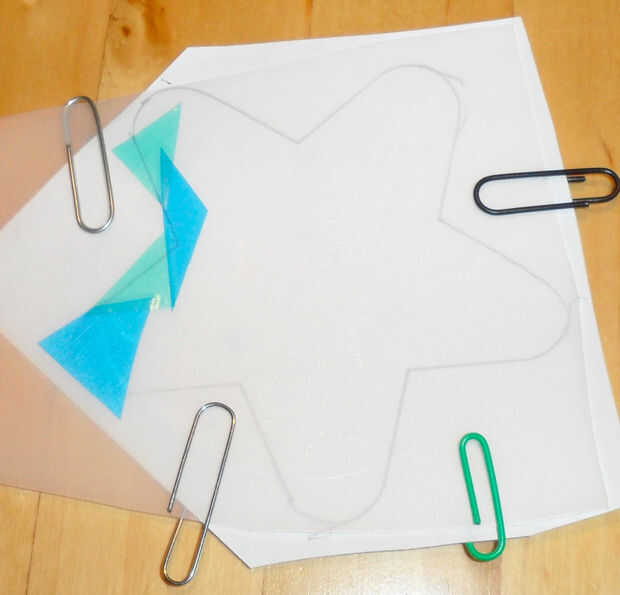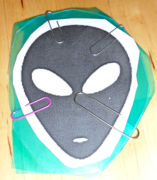 Para el extranjero, coloque papel contact verde a ambos lados del plástico "cristal". Clip de papel patten bajo el plástico.