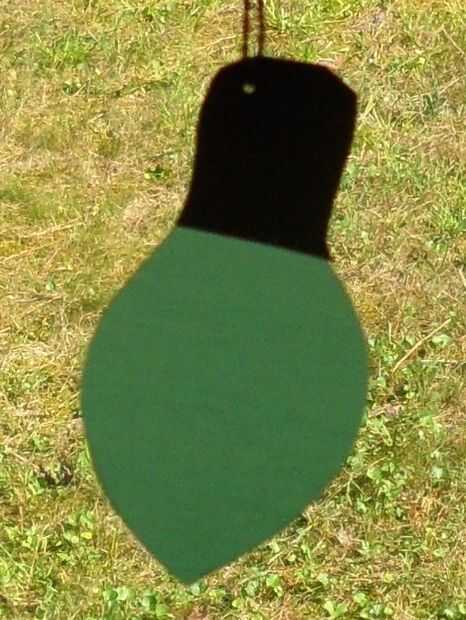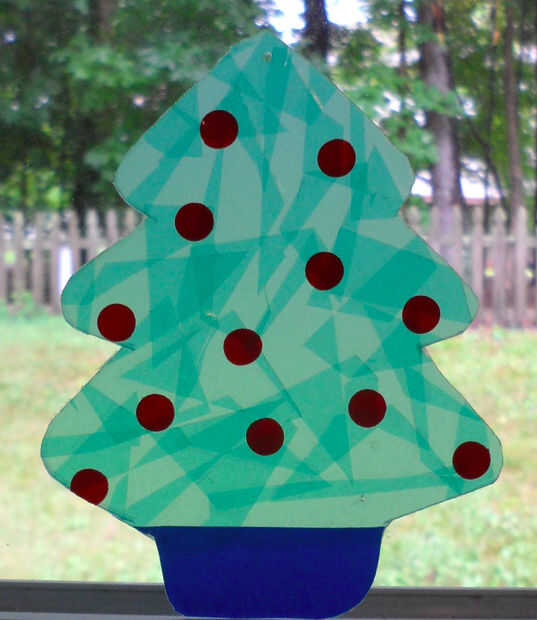 Usé cinta aislante azul para el árbol de Navidad Roja y base cinta aislante para los ornamentos. Usé cinta aislante negra para la base de la bombilla de luz de Navidad.