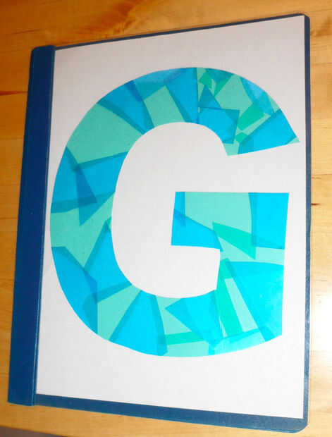 La inicial "G" creado a partir de una transparencia era demasiado floja para colgar. En su lugar usé dentro de una cubierta de informe para una divertida fuente de la escuela.