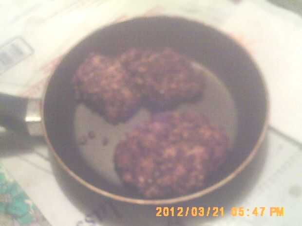 Una vez que las hamburguesas se cuajó en la nevera, les moldear en las hamburguesas. Poner aceite en la sartén y cocinarlas como hamburguesas. Si no tienes que estar cien por ciento vegetariano, uso representa grasa de cocción de otras carnes para agregar el sabor. Para cocinarlas hasta que estén dorados.