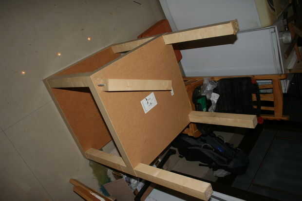 Cuando se conectan todos los rincones, poner en las piernas de la segunda tabla. Cuando las piernas, girar a su nuevo "Falta en falta" mesa derecho hacia arriba.