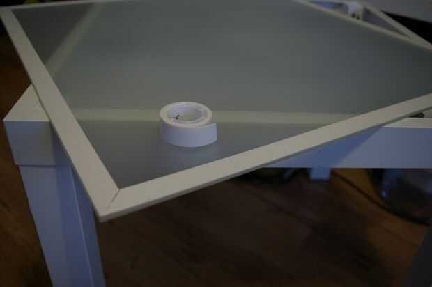 Pegue la cinta de la espuma sobre el cristal. Cuidado con las burbujas de aire.
