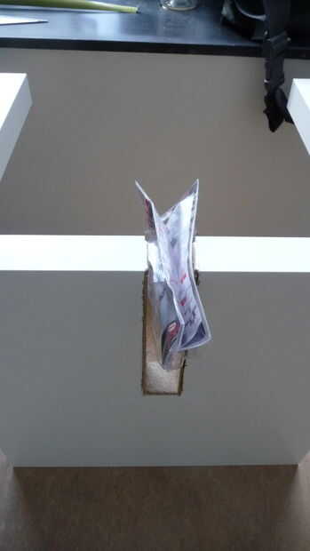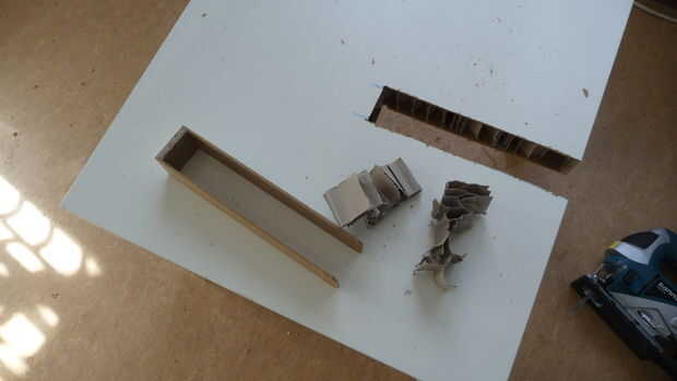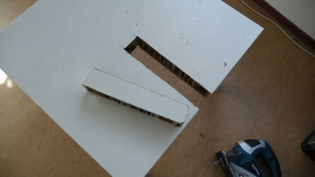 • Gire la pieza de corte y vuelva a colocarlo en el corte en la falta que acaba de hacer con la sierra caladora (ver tercera foto)