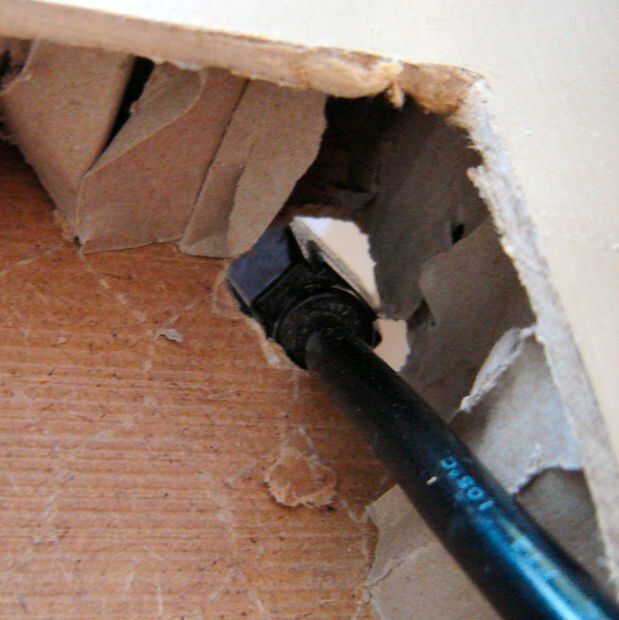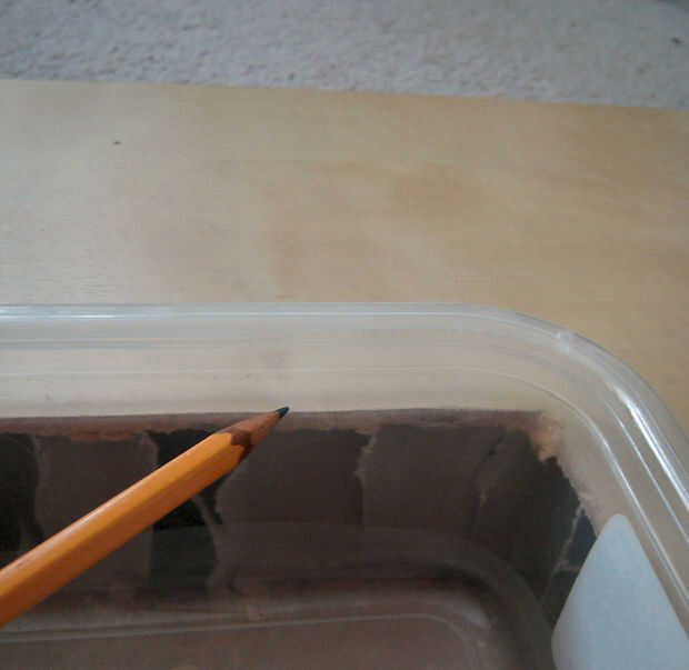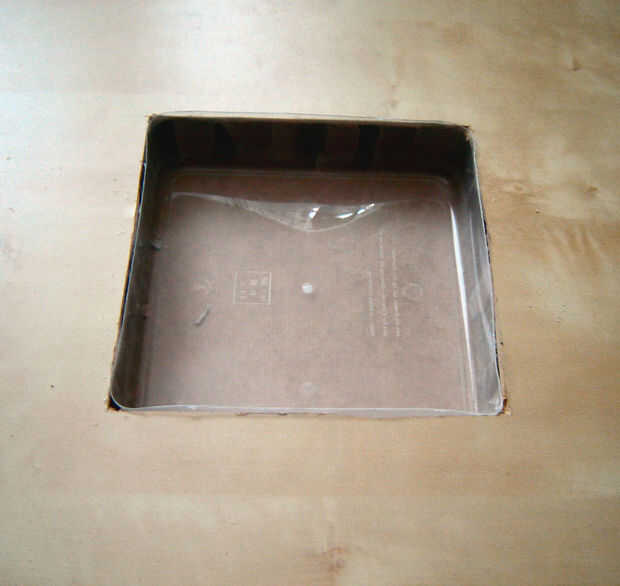 Ya que planea añadir una fuente y luces que necesitaba cortar un agujero en la parte inferior de la tabla para poner el enchufe a través de.