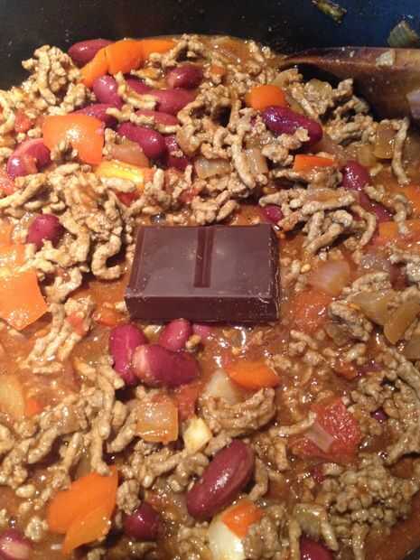 Enjuague y escurra las alubias y añadir a la guindilla con el chocolate.