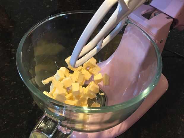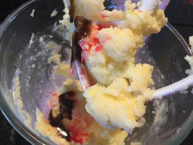 Para hacer la masa de la torta se necesita un mezclador de cocina o una batidora de mano. El tazón de fuente que utilizará las necesidades para ser grande como usted hará más tat 6 tazas de mezcla. La primera cosa a hacer es batir la mantequilla sin sal (225g) en el mezclador de la cocina hasta que la mantequilla esté liviana y esponjosa. Luego agregar las 2 tazas de azúcar impalpable y continuar a batir hasta ligero y mullido. Luego añadir la pasta de vainilla, esencia de fresa y los huevos a la mantequilla y continuar ganarles.