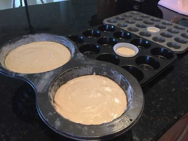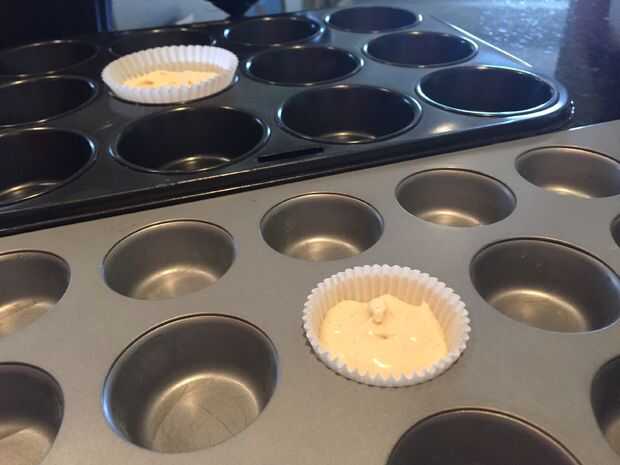 Para los cupcakes regulares Coloque 1/4 taza de la masa en los moldes de muffin. y 1-2 cucharaditas de la masa en la bandeja de mini cupcake.