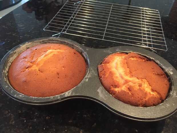 Magdalena gigante: Pre calentar el horno a 160 grados ventilador forzado y hornear el pastel durante 1 hora hasta que puede dura la torta e insertar un pincho o cuchillo hasta que salga limpio un poco, luego deje que el resto de la torta durante 20 minutos en la sartén. Deje la torta enfriar completamente sobre un alambre de refrigeración rack para aproximadamente una hora. Mientras esta se enfría, hacer el glaseado de crema de mantequilla.