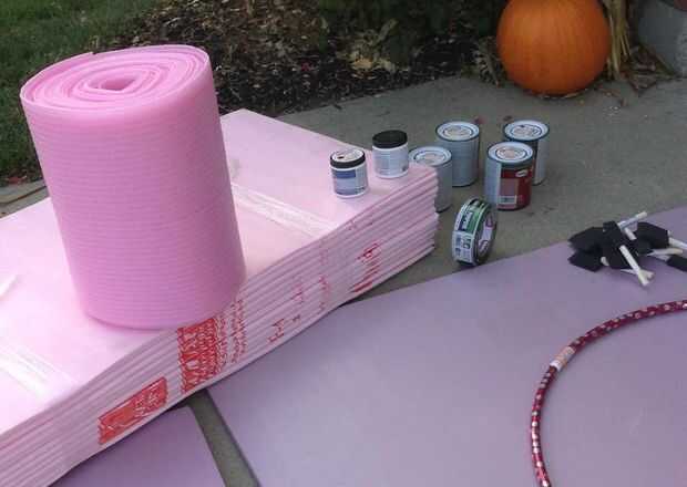 He utilizado el material de la espuma rosa doblado en acordeón para el principal