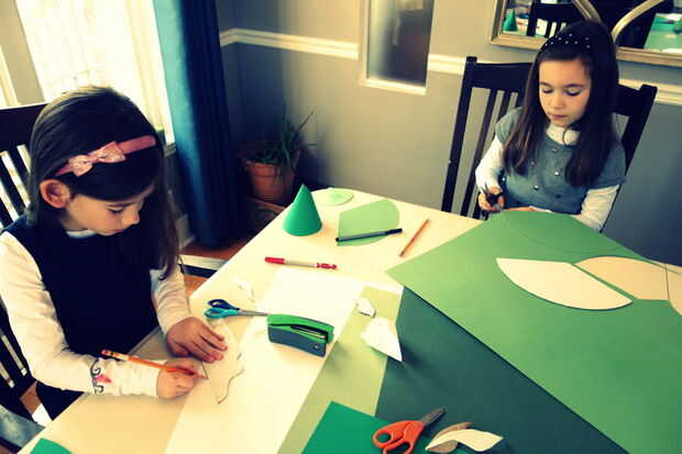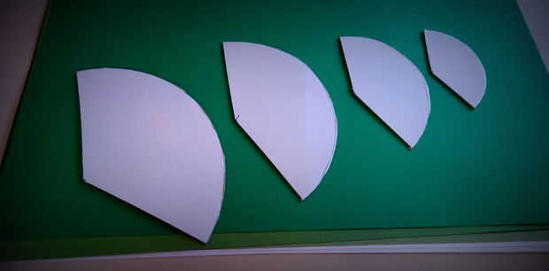 Trazar algunos de cada plantilla en cada una de las hojas de papel verde; a partir de la mayor forma y tratando de mantener los bordes rectos en el borde del papel tanto como sea posible. Esto asegurará que usted maximiza el papel de "real estate" y reducir al mínimo corte. Hace un total de 25 formas de verdes...