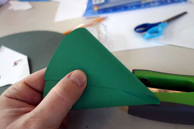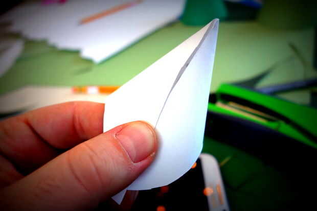 El diluyente su papel, más fácil va a ser para hacer la forma de cono. La parte más delicada es la punta del cono debido a la curva apretada; Yo empezaría por hacer un cilindro cónico y balanceo la punta entre mis dedos y el pulgar mientras con mi otra mano a la fuerza el cono cerrado. Este fue mi trabajo, estoy seguro de que las niñas podrían haber hecho los conos también, pero estaban ocupado trazo y corte.