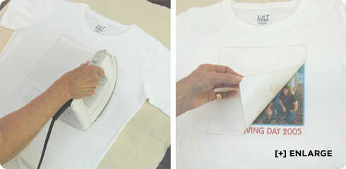5. colocar un papel sulfurizado o un trozo de papel normal sobre el papel de transferencia y su traslado con la presión del hierro durante 3 minutos con la temperatura de algodón NO STEAM. Después de 3 minutos de planchado con presión sobre la transferencia toda, siguen hierro hasta las esquinas del papel comienzan a rizarse y el papel sale fácilmente. Si el papel se atasca mientras Pelar cuidadosamente el papel, continúan hierro y presione hasta que el papel salga fácilmente. Permite la transferencia a enfriar un poco y luego retire el papel protector. Su imagen debe ser perfectamente adherido a la tela.