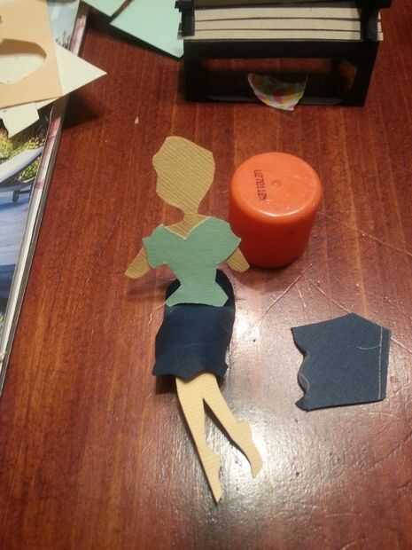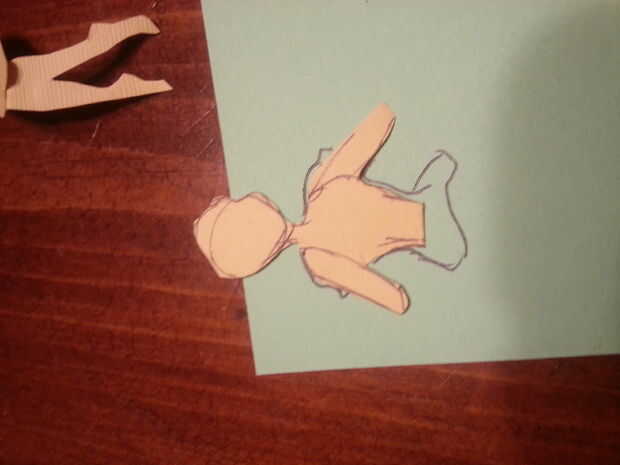 A continuación dibujar formas de cuerpo básico en papel de tono de piel inversa de cómo se enfrentará a su persona. Trato de separar las piezas y reparar nuevamente juntos en las articulaciones, como el torso, brazos y cabeza como una sola pieza, brazos como sus propias piezas, muslos como una pieza y las piernas como una o dos piezas. Los bebés pueden ser una forma de tono de piel sólida y puede añadir ropa más adelante.