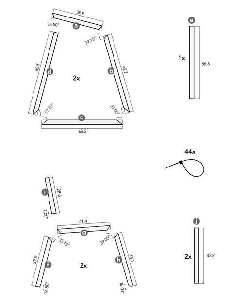 Familie Binder es una pequeña familia de muebles que consiste en el taburete 44/17, la silla 21/44 y la tumbona 46/16. Los asientos son conceptualizados para montaje casero.Una vez cortado, pulido y perforado, las piezas de madera son sencillamente c