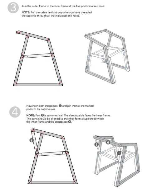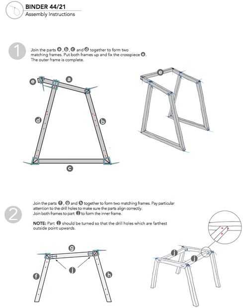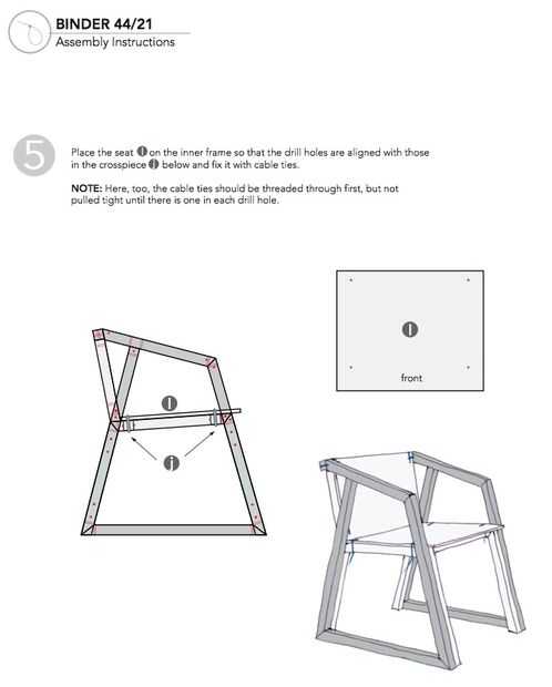 Familie Binder es una pequeña familia de muebles que consiste en el taburete 44/17, la silla 21/44 y la tumbona 46/16. Los asientos son conceptualizados para montaje casero.Una vez cortado, pulido y perforado, las piezas de madera son sencillamente c