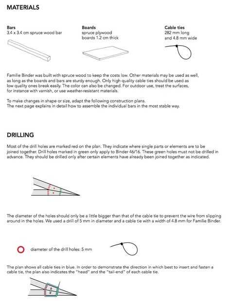 Familie Binder es una pequeña familia de muebles que consiste en el taburete 44/17, la silla 21/44 y la tumbona 46/16. Los asientos son conceptualizados para montaje casero.Una vez cortado, pulido y perforado, las piezas de madera son sencillamente c
