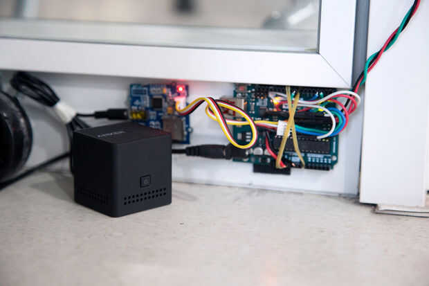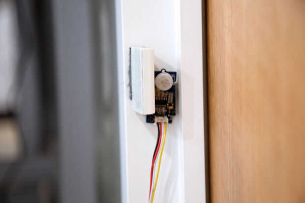 Estamos utilizando el Sensor de movimiento PIR para detectar cualquier movimiento producido por alguien que cruce la puerta, según una función booleana "isPeopleDetected()".