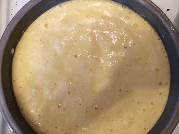 Vierta la mezcla en un engrasada pie - o pastel-tin. Recomiendo una lata de 8"- 10" si está disponible.